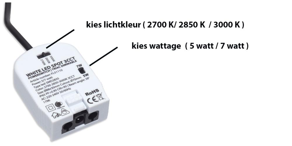 CCT-schakelaar – Pas de lichtkleur aan op de ruimte of het moment: 2700K / 2850K / 3000K