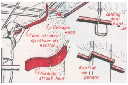 onder de kantlat uit. Een plafondmonteur doet dit op gevoel