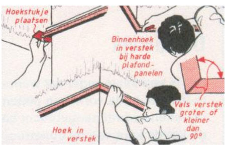 plafondplaten de hoeklijn bij een binnenhoek ook in verstek