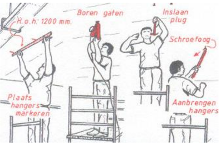 een maatlat uitzetten. De benodigde gaten boren. Afhankelijk