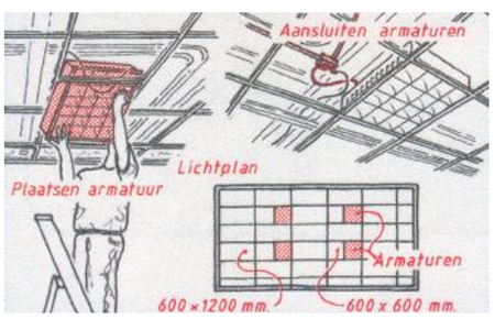 beginnen. Vooraf is een plafondplaten legplan gemaakt en op