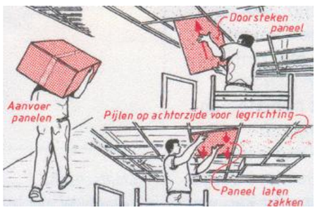 een draagconstructie en plafondplaten. Voor de ophangconstructie
