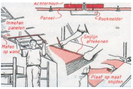 aangeven. Met een scherp mes de plafondplaten pasplaten op