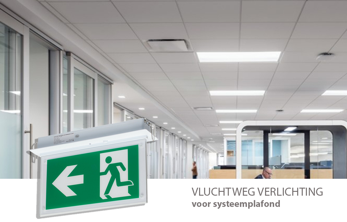 ● Inbouw vluchtweg verlichting systeemplafond, witte behuizing