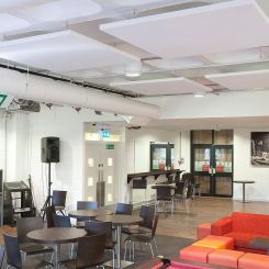 ROCKFON Eclipse plafondeilanden zijn innovatieve, akoestische plafondeilanden die helpen om de akoestiek in de ruimte te verbeteren. Er zijn vele vormen en een onbeperkt aantal NCS ® kleuren leverbaar. Met een grote reeks van ophangmogelijkheden, is alleen de verbeelding een beperkende factor. Net als andere oplossingen van ROCKFON, levert ROCKFON Eclipse de best mogelijke nagalm reductie die te verkrijgen is op de Europese markt. Combineer techniek met een fraai uiterlijk.