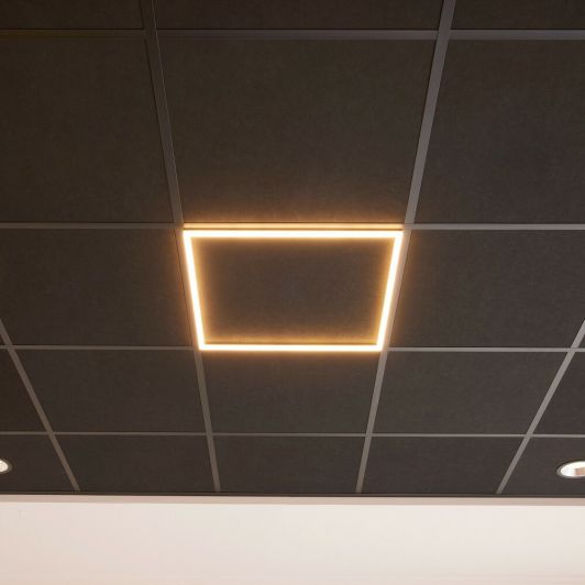 Dit paneel is geschikt voor inleg in een 24mm breed standaard plafondraster moduul 600x600 mm.